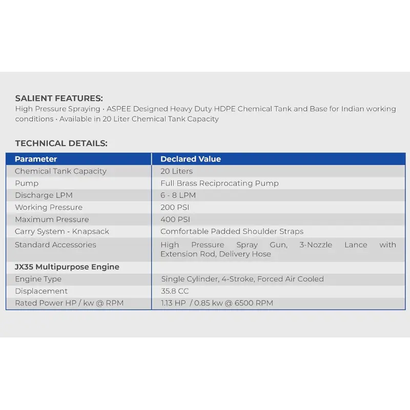 Aspee KP35/4S Jonathan Knapsack Power Sprayer, 35.8 CC